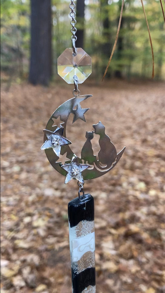 Black and white Heart shape Recycled Fused Glass Necklace limited edition. Heart pendant