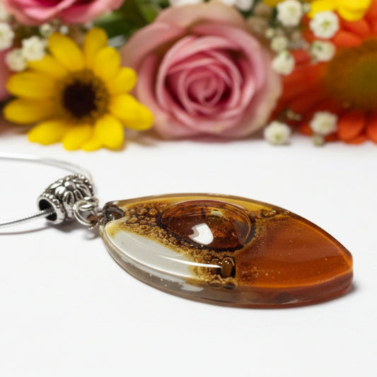 Beige, terracotta, Brown and White Fused Glass leaf Pendant. Recycled Glass Necklace