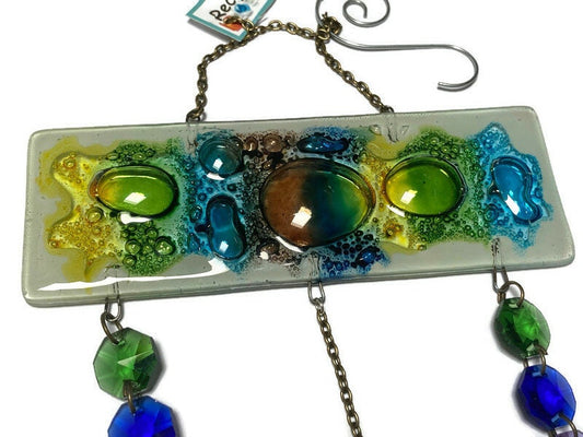 Hand painted Recycled Glass hanging decoration. Handmade fused glass ornament. Colorful home decor.Regular price $42.00Regular priceUnit price / per$42.00Sale price $42.00