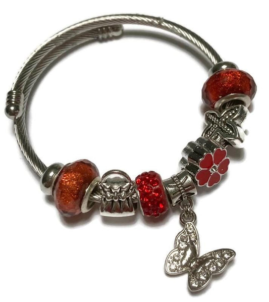 Red Butterfly Stainless Expandable Easy to put on stretch memory wire Charm Bracelet. One size fits mostRegular price $20.00Regular priceUnit price / per$28.00Sale price $20.00Sale