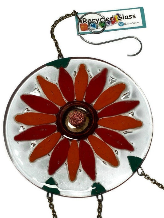 Red flower Hand painted Recycled Glass hanging decoration. Handmade fused glass ornament. Colorful home decor.Regular price $42.00Regular priceUnit price / per$42.00Sale price $42.00Sold out