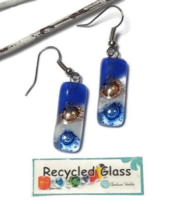 Small Blue Earrings. Recycled fused glass Earrings. Drop Earrings