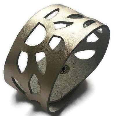 Sunflower Cuff Bracelet. Reclaimed Leather wrist Band. Platinum Color.