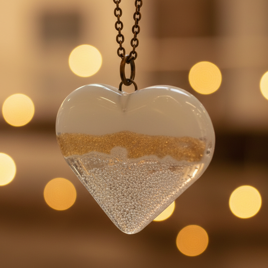 White and clear white Heart shape Recycled Fused Glass Necklace limited edition. Heart pendant