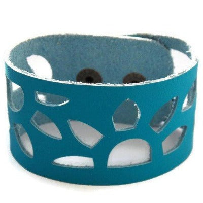 Turquoise Leather Wrist Band. Sunflowers Bracelet. Reclaimed Leather Cuff Bracelet