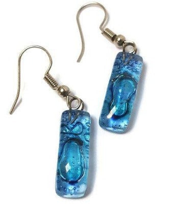 Small Rectangular blue recycled Glass Earrings. Fused Glass Jewelry