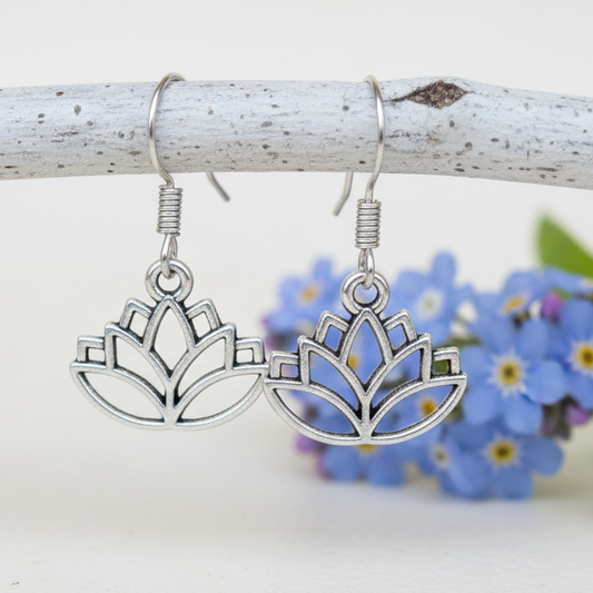 Lotus flower set. Earrings and pendant. Recycled Fused glass pendant. Handmade bead. Lotus Yoga dangle earrings. Eco friendly. Handmade
