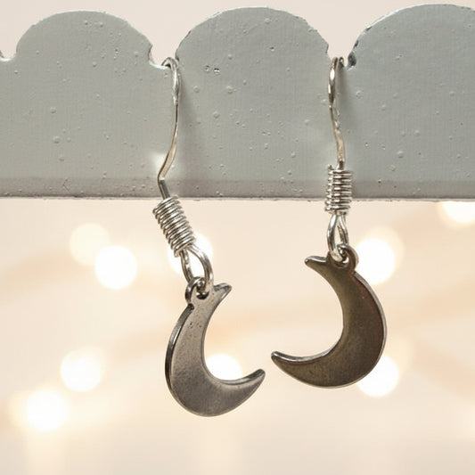 Small moon set of earrings and Necklace. Recycled fused glass white and brown bead pendant. Handmade ecofriendly jewelry. Magical astral.