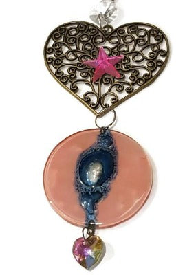 Floral Reclaimed Leather Wide Cuff Bracelet. Fused Glass and Leather Wrist band. Unique eco fashion jewelry, Turquoise glass bead w bubbles!