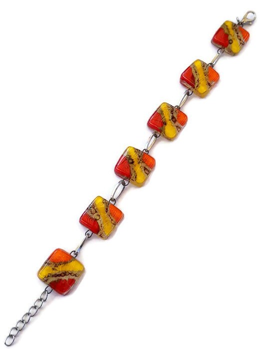 Recycled Fused Glass Yellow, Orange, Red and Brown Bracelet