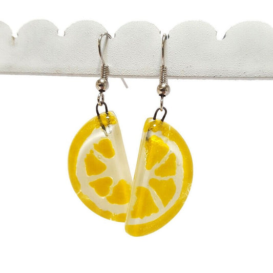 Lemon wedges Recycled Glass Drop Earrings. Purple Dangle earrings. Great gift. Fun eco friendly jewelry