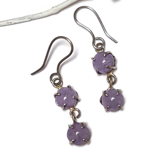 Lilac double bead One of a kind Recycled Glass Dangle earrings. Handmade fused glass dangle earrings. Dainty glass drop. Unique pieces
