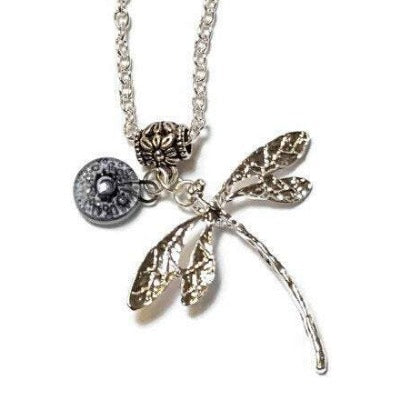 Dragonfly necklace. Recycled fused glass lavender color bead.