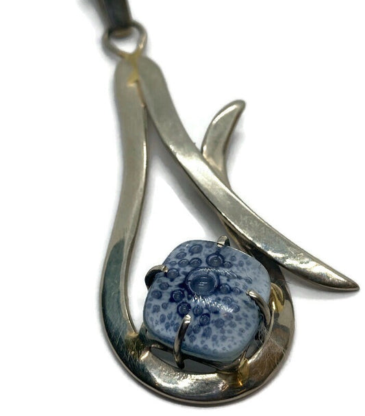 One of a kind Recycled Glass black pendant . Handmade fused necklace. Dainty glass jewelry . White and purple- gray coloor