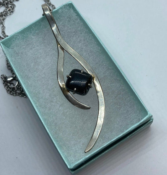One of a kind Recycled Glass black pendant . Handmade fused necklace. Dainty glass jewelry . Unique pieces. Awesome stone