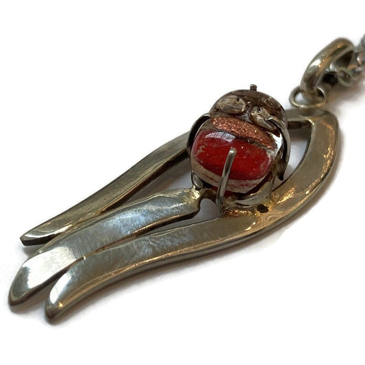 Fused Glass Pendant . Red, and Brown Glass Necklace. Silver Plated Chain. Unique Glass Recycled Glass Pendant. Handmade gifts.