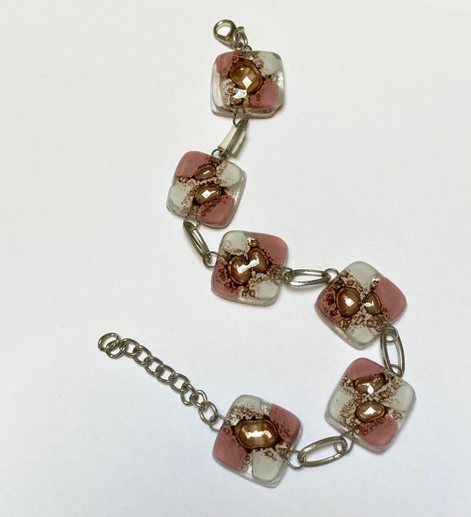 MICHAELRecycled Fused Glass Pink, Brown and White Bracelet