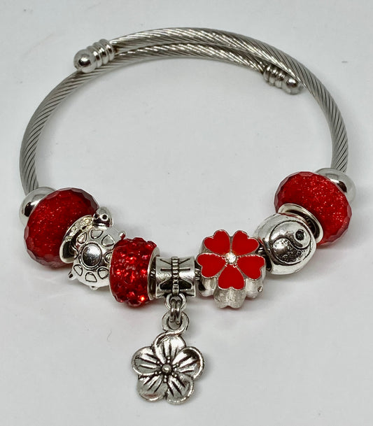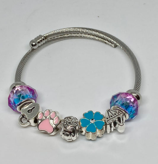 Brenda Blue Purple and pink Stainless Expandable Easy to put on stretch memory wire Charm Bracelet. One size fits most