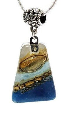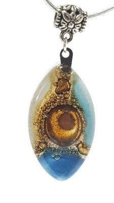 Blue. white and Brown Fused Glass small Pendant. Recycled Glass Necklace