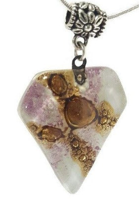 Pink and Brown Fused Glass small Pendant. Recycled Glass Necklace