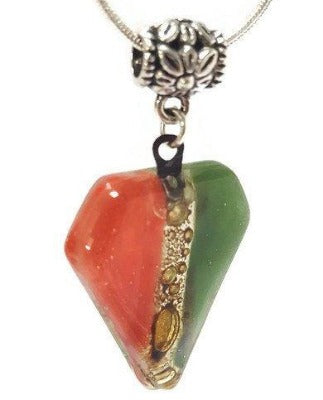 Fused Glass Pendant . Red, green and Brown Glass Necklace. Silver Plated Chain.