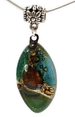 Green, teal and Brown Fused Glass small Pendant. Recycled Glass Necklace