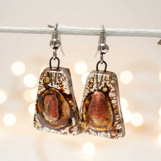 Copper pink and brown recycled fused glass earrings