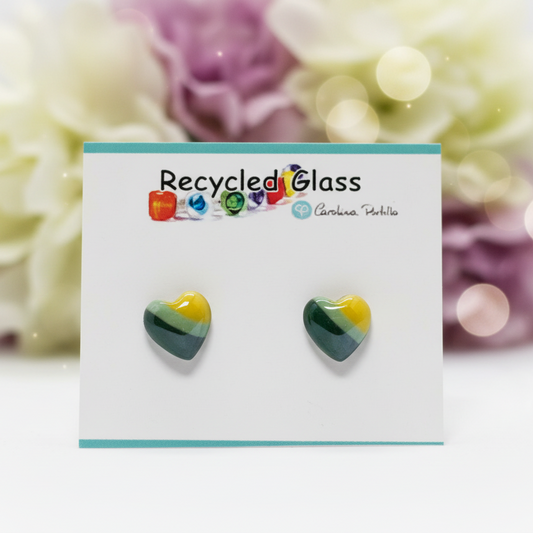 Green and Yellow Heart studs