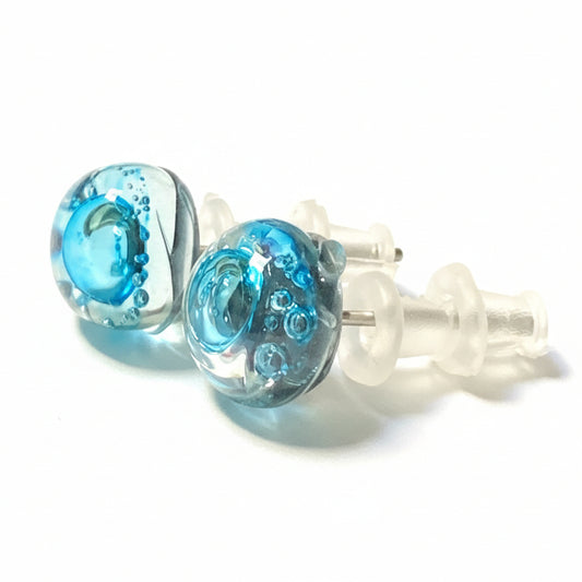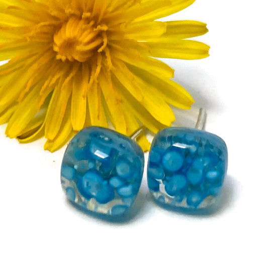 Small Post Turquoise Earrings. Fused Glass Studs. Recycled Glass jewelry. Stud earrings