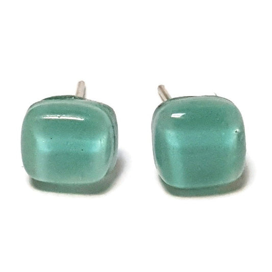Small square post Earrings. Light teal green color. Fused Glass Studs. Recycled Glass jewelry. Stud earrings