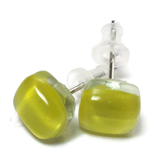 Small square post Earrings. Fun clear green color. Fused Glass Studs. Recycled Glass jewelry. Stud earrings