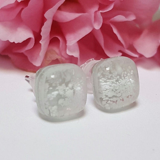 Small square post milky white color. Fused Glass Studs. Recycled Glass jewelry. Stud earrings. Fun color.