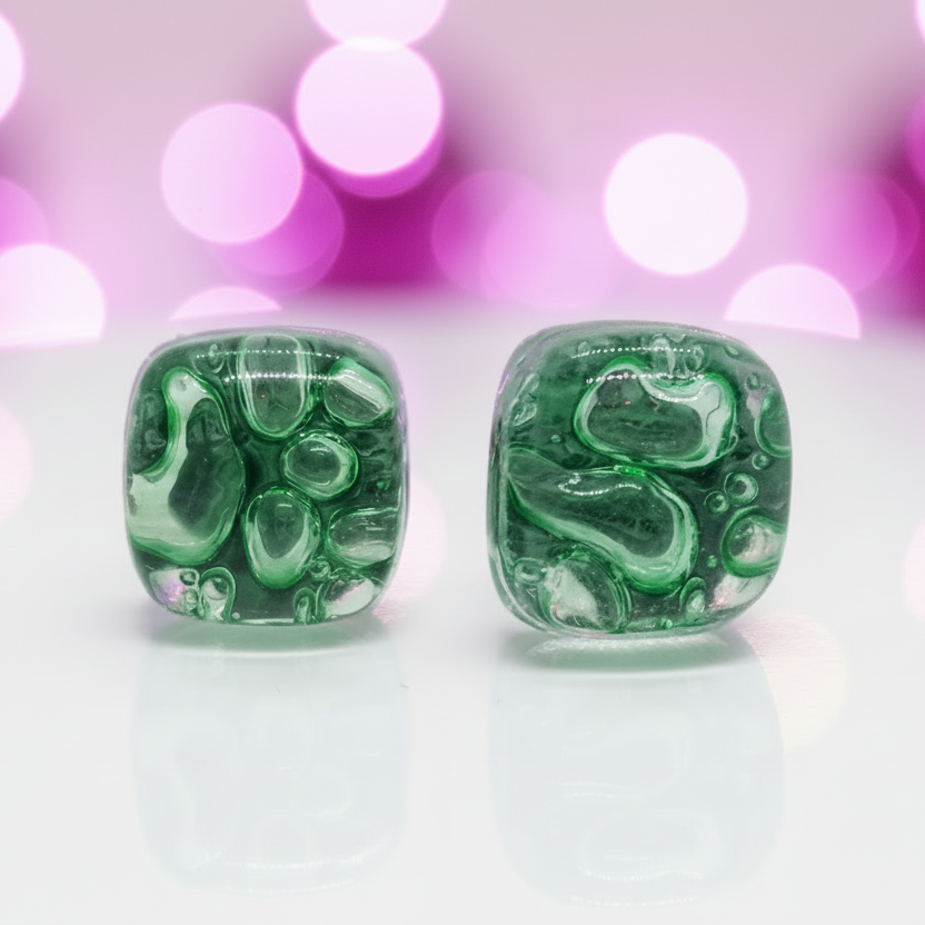Small square post Earrings. Fun clear green color. Fused Glass Studs. Recycled Glass jewelry. Stud earrings
