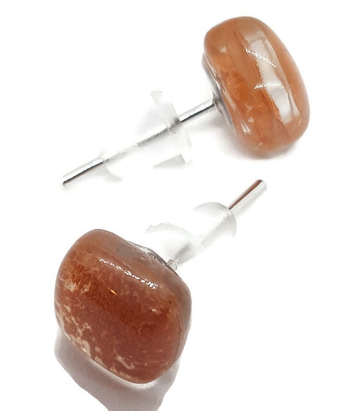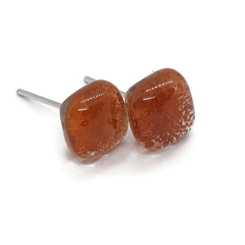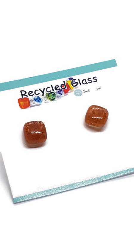 Small square post terracotta color. Fused Glass Studs. Recycled Glass jewelry. Stud earrings. Earthy color.