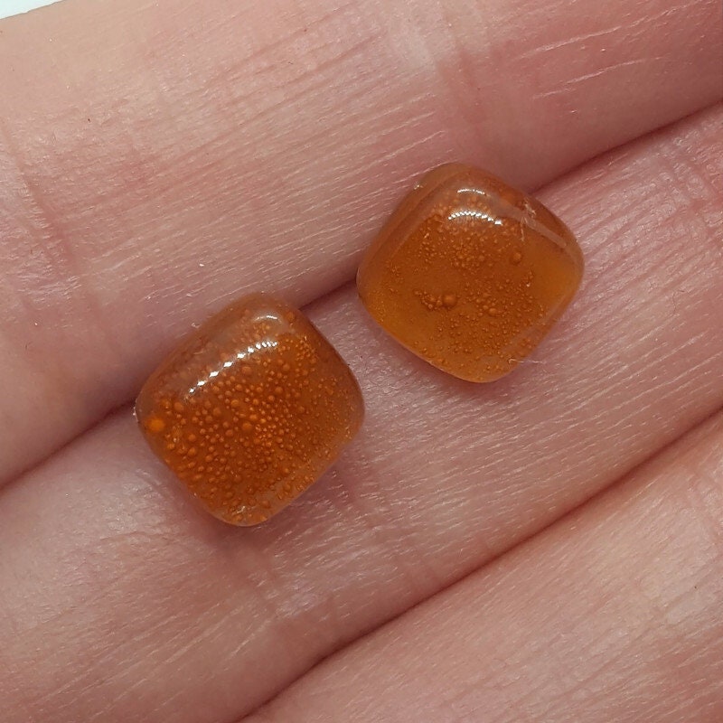 These earrings are very small. In fact, I cannot cut the glass smaller than this. These earrings are square. Approx 0.25" (quarter of an inch) each side. All my pieces are handmade. Please allow some variations.