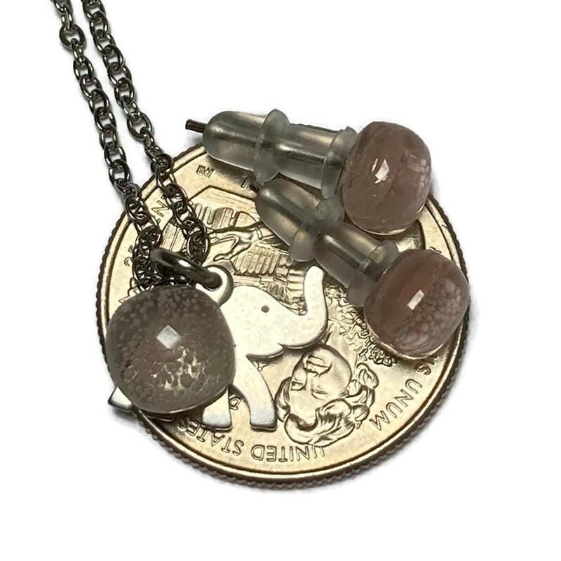 Elephant Dainty and pale pink Set. Small Fused glass bead pendant and post earrings.