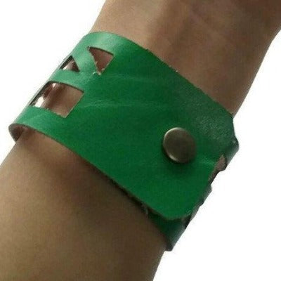 Green Leather "Self-Empowering" Wrist Band. Leather Cuff Bracelet.