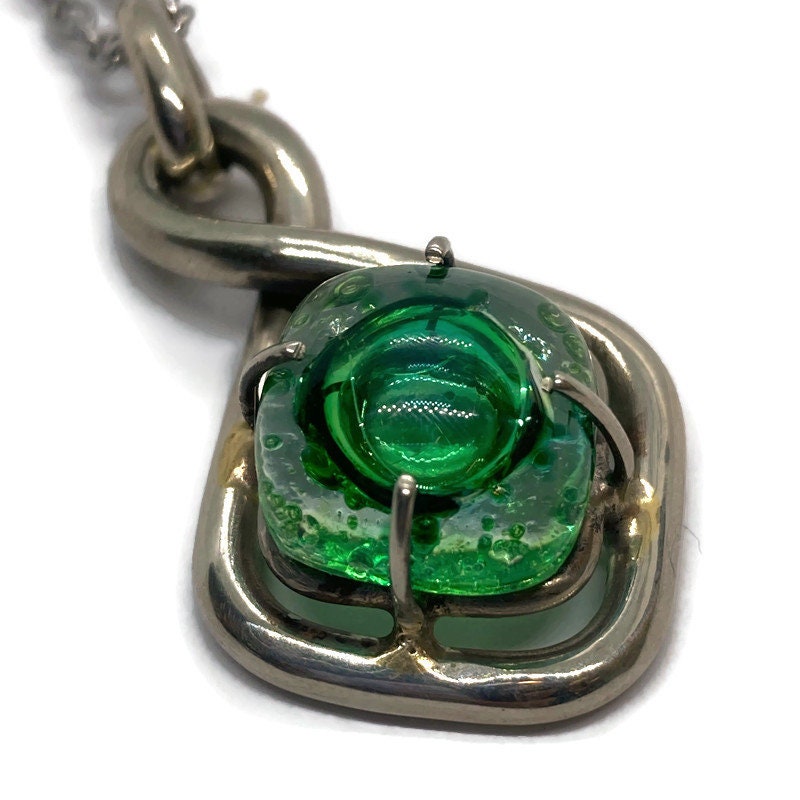 One of a kind Recycled Glass Green pendant . Handmade fused necklace. Dainty glass jewelry . Unique pieces. Awesome stone