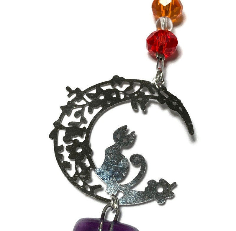 Recycled Fused Glass Rainbow Cat Hanging ornament. Super cute window/wall hanging decoration ornament made with repurposed materials.