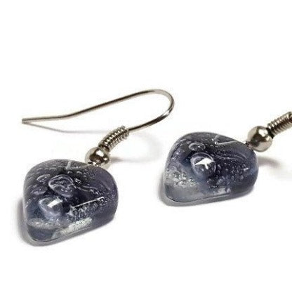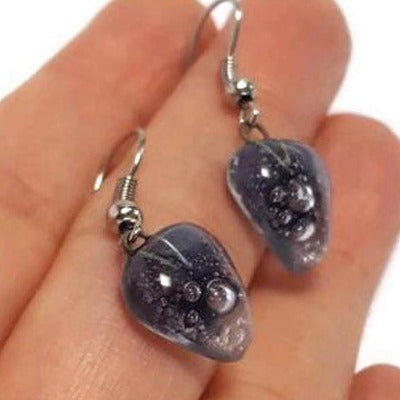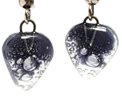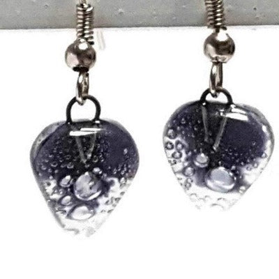 Small purple Earrings. Heart Shape Recycled glass Jewelry. Fused glass purply gray drop Earrings.