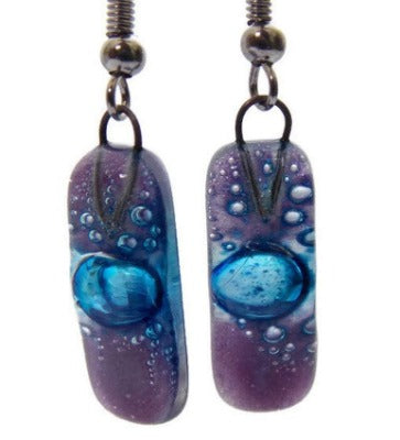 Small Rectangular Lilac and blue recycled Glass Earrings. Fused Glass Jewelry