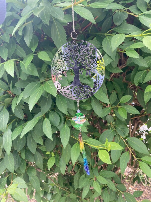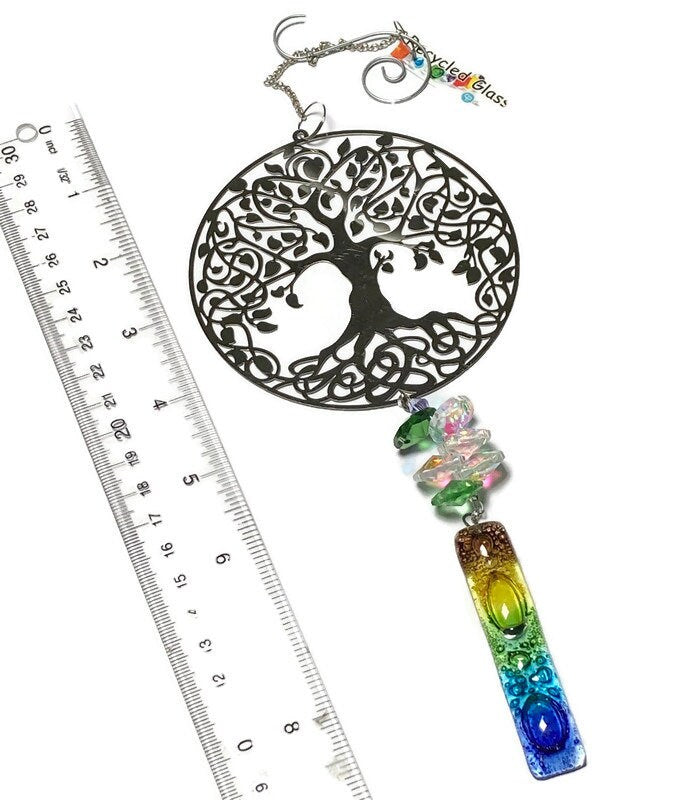 Tree of Life hanging decoration. Handmade fused glass ornament. Colorful home decor.