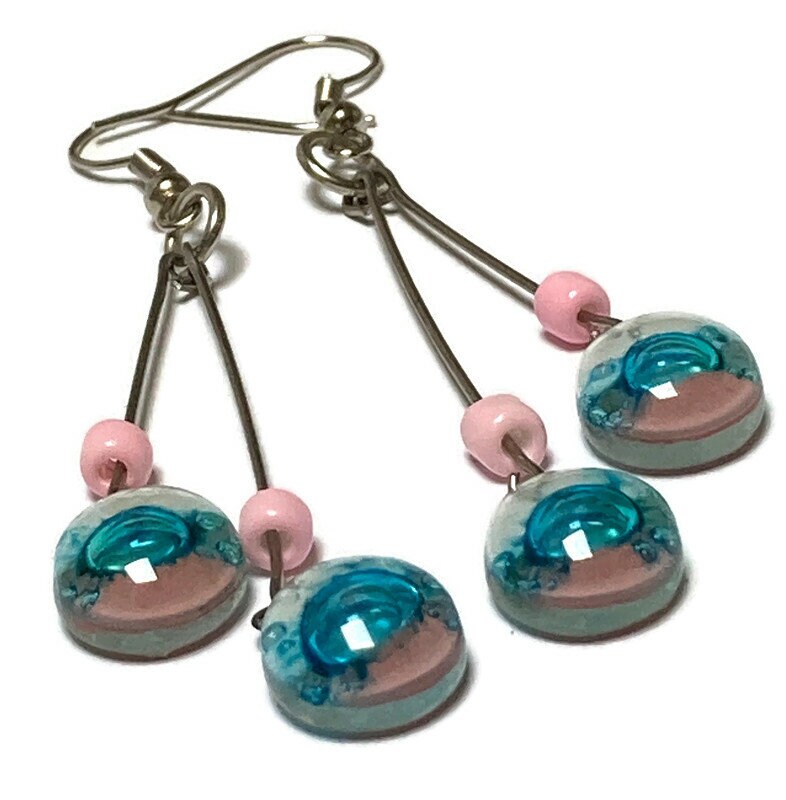 White, pink and turquoise Long multiple bead earrings