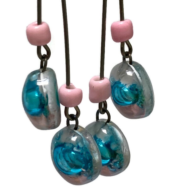 Welcome to Recycled Glass Jewelry. We use window glass (float glass), cut, shaped, polish and hand painted with glass powder paints. The glass layers are stacked one on top of the other and placed in the kiln. During the firing when the glass reaches the right temperature, the layers melt together becoming a one of a kind creation. The bubbles give each piece uniqueness and character. It is always fun to open the kiln and see the results! Eco designed jewelry!