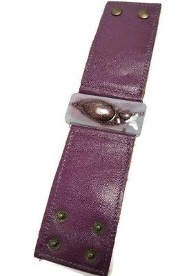 Handmade Leather cuff. Lilac, lavender with silver color glass Purple color Leather.
